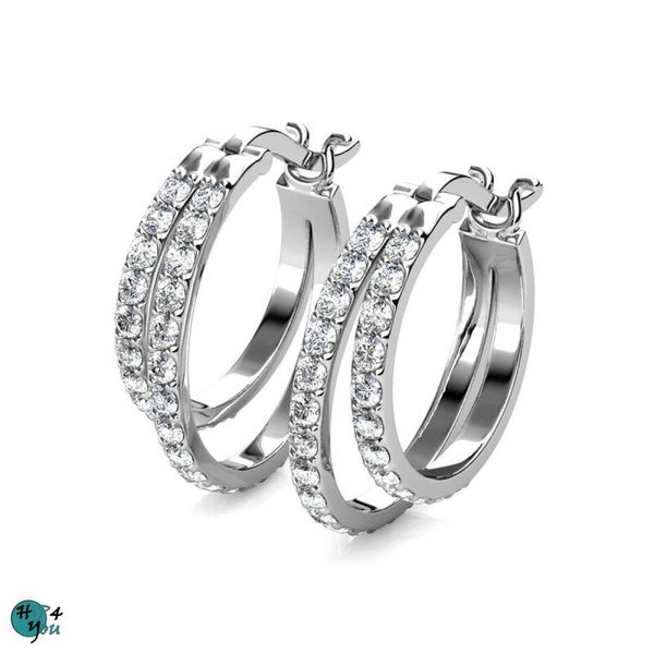 Deze duo cirkeloorbellen met Oostenrijkse kristallen zijn volledig gemaakt van messing van een hoge kwaliteit. Met een fijntjes gepolijst oppervlak dat mooi glanst en een laagje rhodium Plated waardoor die glans extra lang behouden blijft. Deze dubbele cirkeloorbellen bestaan uit een oorring met een slanke steker en een scharniersluiting. De oorringen zijn voorzien van meerdere Oostenrijke kristallen die mooi glinsteren. Deze oorringen zijn speciaal ontworpen voor dames en hebben een diameter van 22mm.