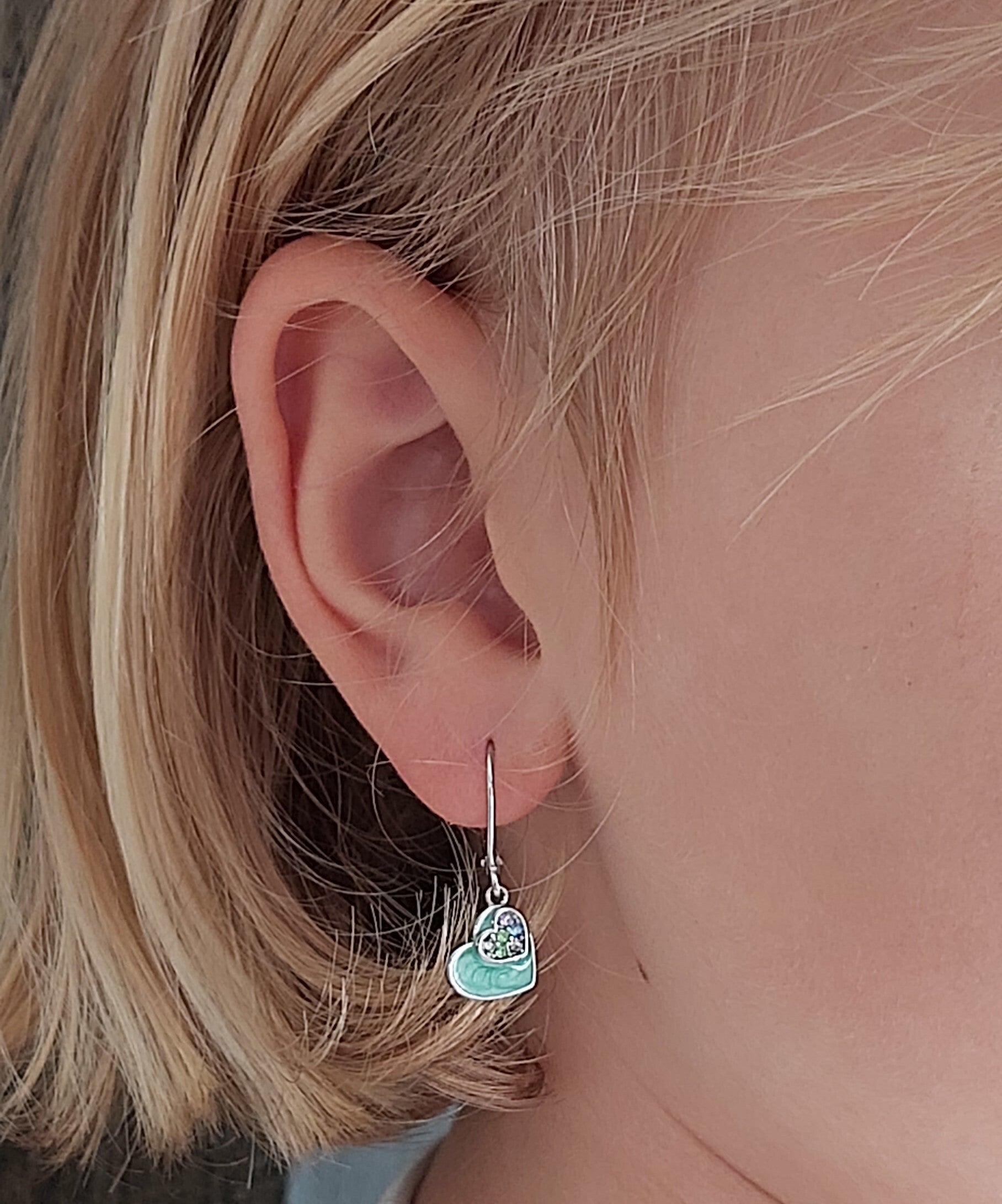 Deze zilveren munt groene hartjes oorbellen zijn gemaakt van 925 sterling zilver, de allerbeste kwaliteit edelstaal. Deze oorhangers bestaan uit een zilveren brisuresluiting, met daaronder een zilveren hangertje in de vorm van een hartje dat gekleurd is met munt groene emaille en afgewerkt met gekleurde Swarovski kristallen. Deze oorhangers zijn bijzonder leuk schattig cadeau voor de kleintjes. Het hartje heeft een afmeting van 9 mm..